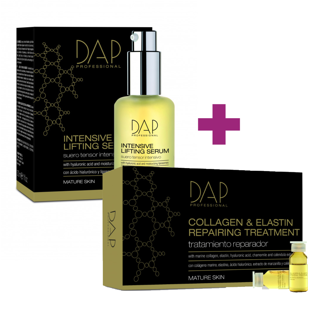 DAP intenzivni lifting serum s hialuronsko kislino in vlažilnimi liposomi + DAP kolagen in elastin ampule